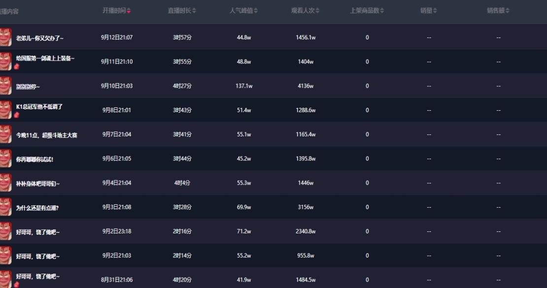 最典型的例子是旭旭宝宝,刚加盟抖音时,旭旭宝宝的流量人气峰值在50万左右,一场直播,观看人次可以达到1000-1500万左右。