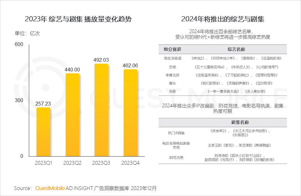 4.1 剧集与综艺市场在内容上进行“排兵布阵”,老IP延续,“新面孔抢滩”,预期将为2024年流量带来好势头