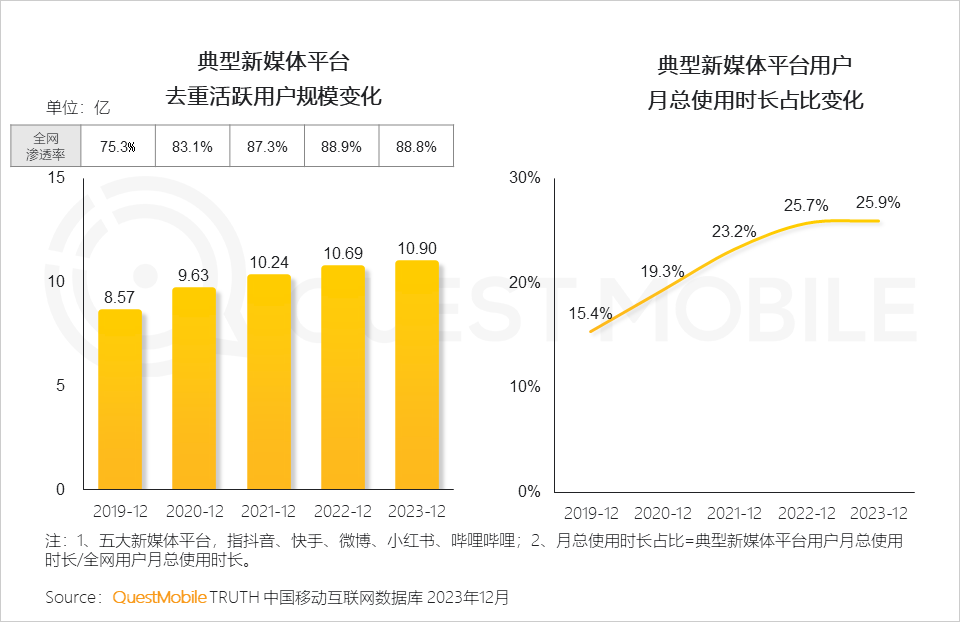 2.1 用户注意力向新媒体平台集中,总使用时长占比超1/4
