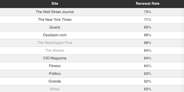 最近媒体AdAge的报道称,一家数字营销公司MediaRadar的数据显示,当广告投放的时间少于6个月时,媒体原生广告产品的平均续签率只有33%。但是,像《华尔街日报》这样的媒体,续签率能达到72%。
