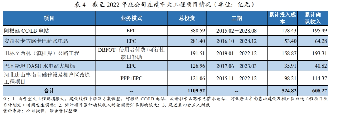截至2022年底,葛洲坝集团在建重大工程项目包括阿根廷CC/LB电站、安哥拉卡古路卡巴萨水电站和巴基斯坦DHPP项目,总投资超1000亿元。