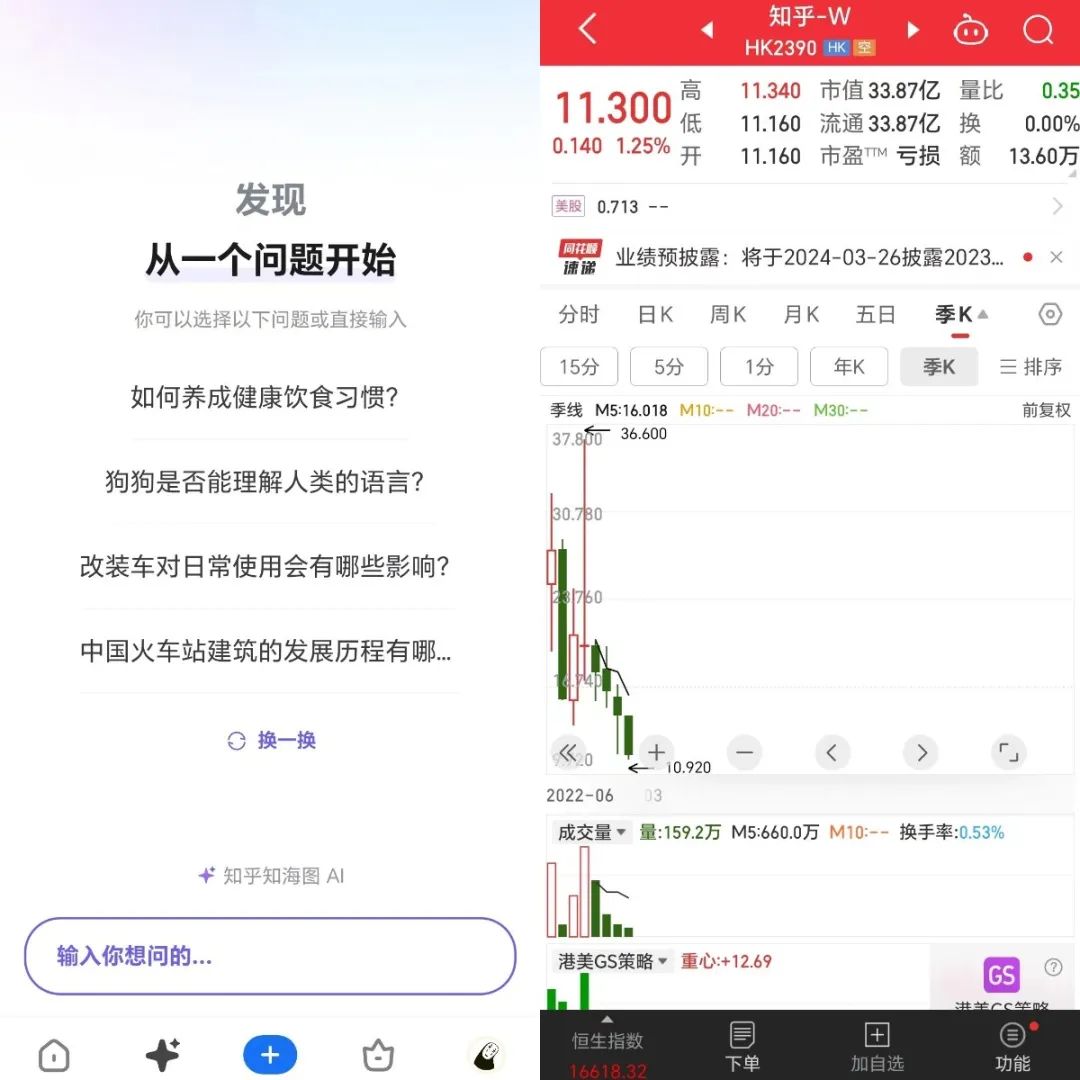 但此后,大模型似乎与知乎脱钩了。即便知乎于4月推出了自己的大模型“知海图AI”,也只是让知乎股价短暂上涨了一下。