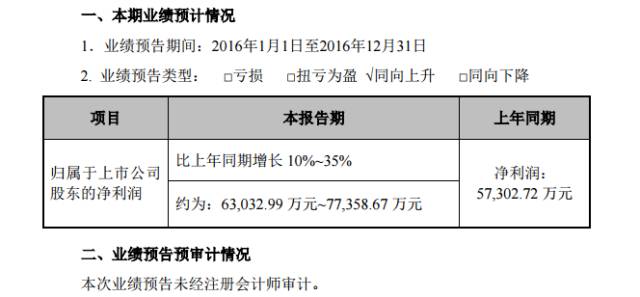 除夕前夜,乐视网(300104.SZ)发布2016年年度业绩预告称,报告期内归属于上市公司股东的净利润比上年同期增长 10%-35%,约为:63032.99-77358.67万元。