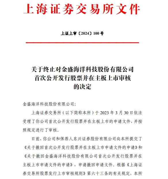 3月22日披露公告显示,金盛海洋及保荐人东兴证券申请撤回上市申请文件。