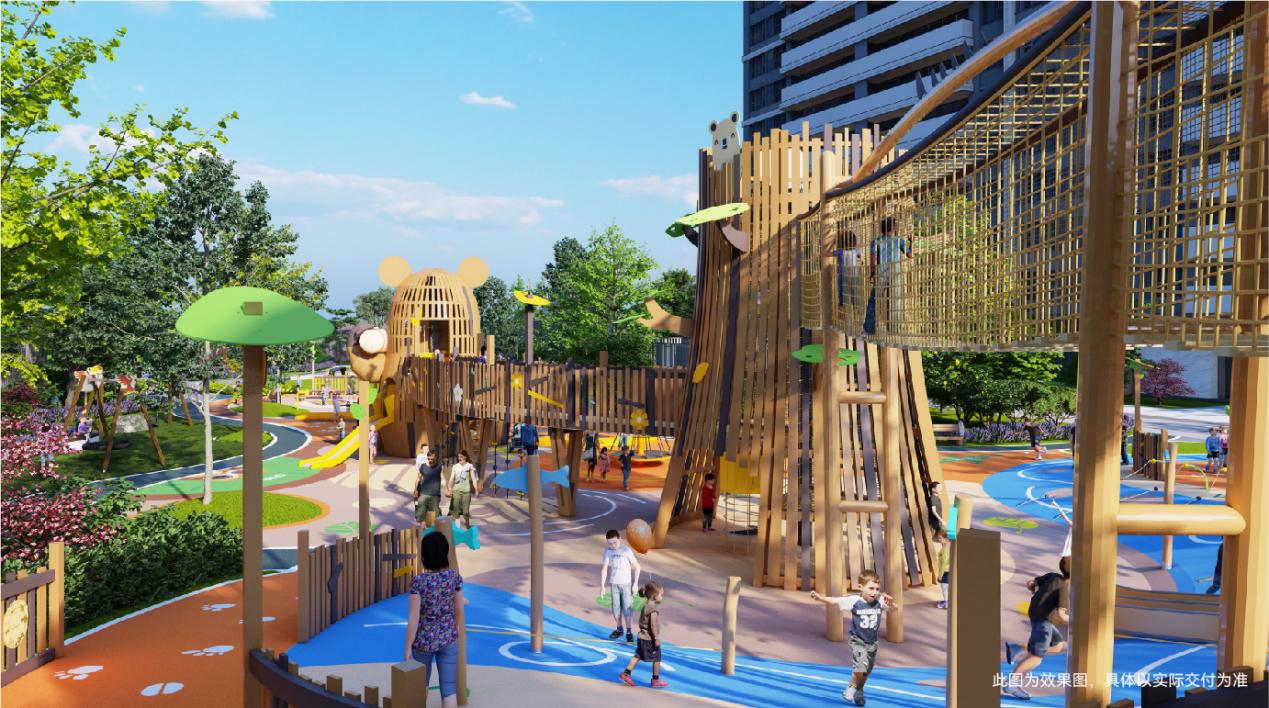 此外,在儿童游乐区的设计上,银丰·玖玺城二期珺府,也根据不同阶段的需求,打造1-3岁低龄游戏区、3-12岁综合游戏区、1-12岁全龄段动态游戏区、大龄坡地攀爬科普游戏区,致力于让孩子们可以在游戏中运动,在游戏中认知和成长。