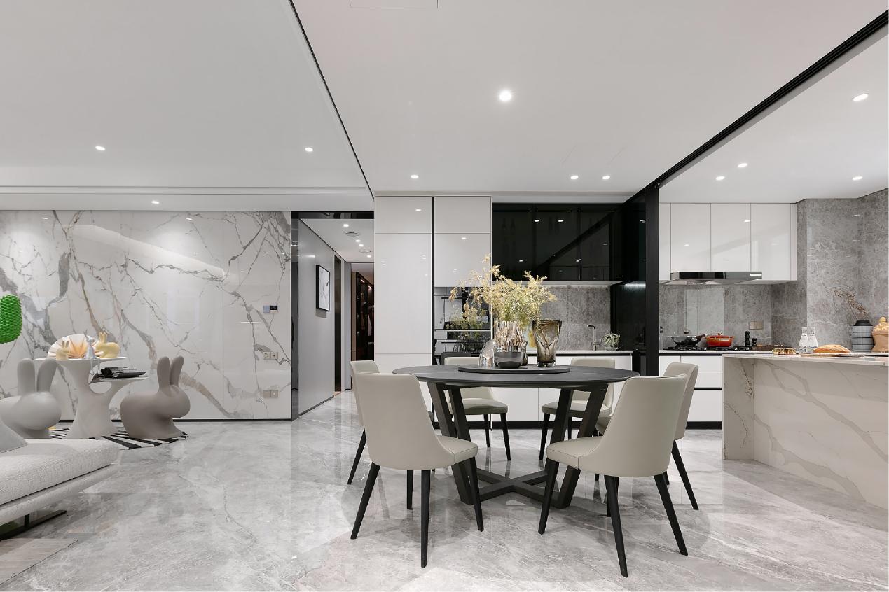 在户型打造方面,银丰·玖玺城拥有建筑面积约128-330m²天幕大平层,匠心规制最大约22.9m南向四开间,极佳的采光充盈居家的每一处场景;引入了LDK一体化设计,实现空间的动静结合,打破家庭成员生活动线的隔阂感,让空间融会贯通,又互不干扰;玄关柜 360°旋转鞋架、厨房可移动的轨道插座、中央空调隐形风口、卫生间兼具美观与实用性的壁龛,增加生活的便利,彰显高端的匠心细节。