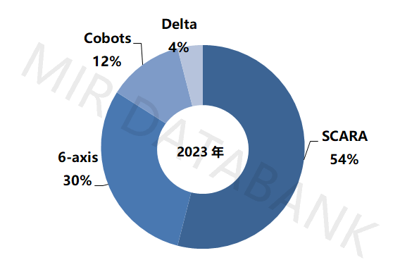 3C行业产品零部件尺寸小,精密度高,并且制作流程较为复杂,因此对工艺有着较高的要求。相比工业机器人与协作机器人来说,拥有着更高精度、更小体积和更高灵活度的SCARA机器人,在3C行业领域更具优势,因此成为了3C行业领域应用最多的机器人之一,2023年市场占比高达54%,占据3C行业过半数市场。