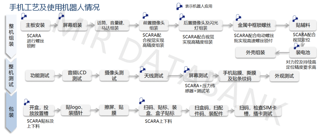 MIR预计,随着2024年细分行业自动化投资复苏,整体市场将逐渐回暖。未来随着经济环境回暖、手机迭代加速,3C行业市场逐步增长,目前组装、上下料、测试等较多工艺可通过SCARA实现自动化,未来将拉动SCARA机器人市场快速增长。