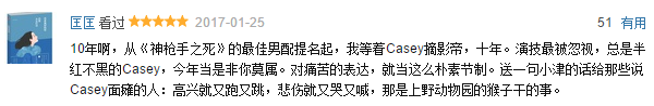 这次卡西将李这个角色的悲伤与悲哀淋漓尽致地表现了出来。这个角色几乎囊括了所有人的悲伤,可谓是“丧之集大成者”,与片中出现的所有角色都有着千丝万缕的关系。