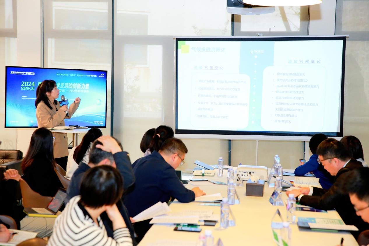为搭建沟通平台,构建气候投融资生态圈,共同推动气候投融资领域的创新与发展,2024年3月26日,由四川天府新区生态环境和城市管理局指导,天府气候投融资产业促进中心主办,成都现代金融产业生态圈联盟、四川联合环境交易所承办的2024年天府新区“蓉易见”系列活动——生态环保专场气候投融资专题·行业协会座谈会,在中国·天府国际基金小镇顺利举行,来自环境保护、环境政策研究、绿色发展、再生资源、供应链金融、小额信贷等领域的12家行业协会和科研院所,共计40余人参与了本次座谈会。