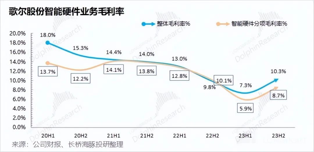 综合看智能硬件毛利率和整体毛利率,两者变化上越来越趋同。主要是由于智能硬件业务占比已经达到一半以上,对公司整体毛利率影响较大。