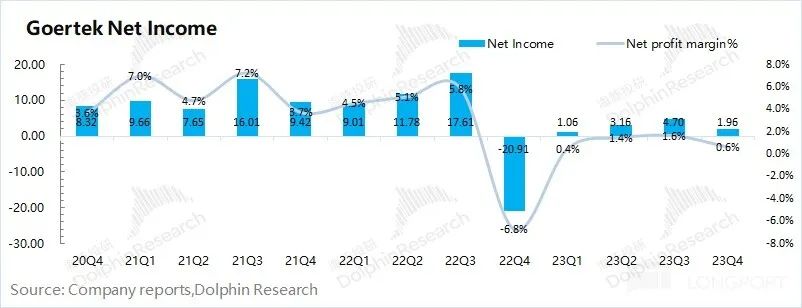 2023 年第四季度公司净利率回落至 0.6%,仍然维持在盈亏平衡线附近。由于当前下游需求相对疲软,公司盈利能力未见较大改善。