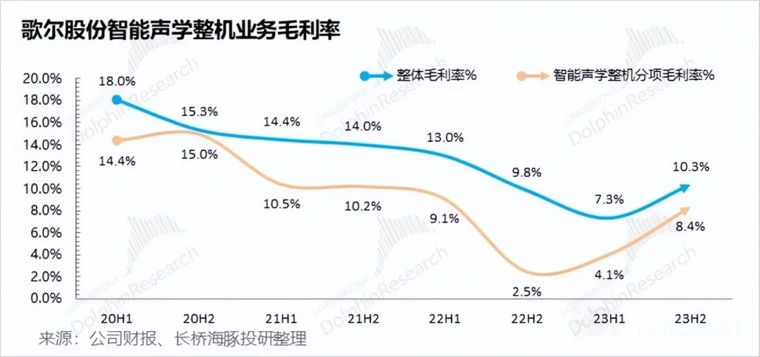 海豚君认为,当前仍未看到歌尔经营面走出困境的迹象,股价也仍将继续在低位徘徊。而在当前市场情况下,公司仍将承受相对低迷的收入和毛利率。歌尔业绩面的全面向好,仍需要关注 VR、MR 等需求端的回暖情况。