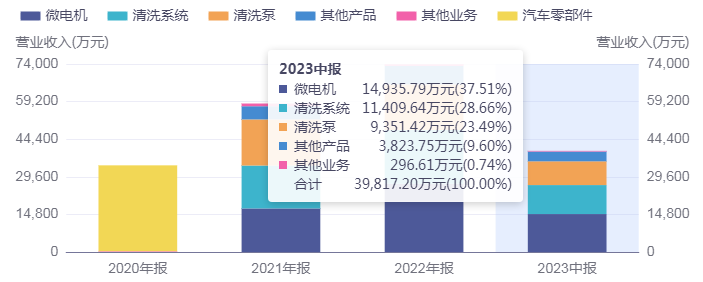 其中,电机业务与汽车清洗系统为公司上市之初便已具备的两大拳头产品,合计占比超90%。