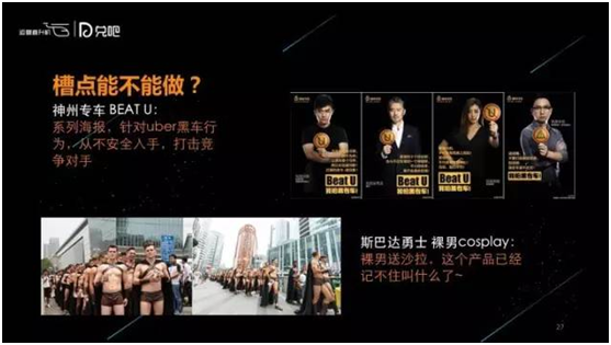 所以我的建议是指我们在做槽点营销的时候,不要以为的三俗,而是要根据产品属性来做一些曝光。今年做最具代表性的槽点营销案例我觉得有神州的“LOVE U”和新世相策划的“四小时逃离摆上广”、“丢书大作战”。都是非常具有正能量的,神州还因为“LOVE U”掰回了之前的“BEAT U”的坏口碑。