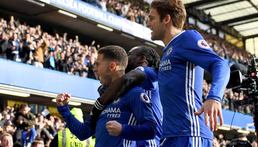 易边再战,切尔西在第53分钟扩大比分,科斯塔头球做球,阿扎尔从中圈开始上演长途奔袭,在突破科斯切尔尼何科奎林等人的防守后于小禁区前施射破门,2-0。这也是阿扎尔在本赛季英超的第10球。第85分钟,切尔西再度破门,切赫开球失误直接分给刚刚替补出场的法布雷加斯,后者顺势吊射空门得手,3-0。这粒进球也被调侃为“前切尔西门将助攻前阿森纳球员攻破阿森纳的球门”。