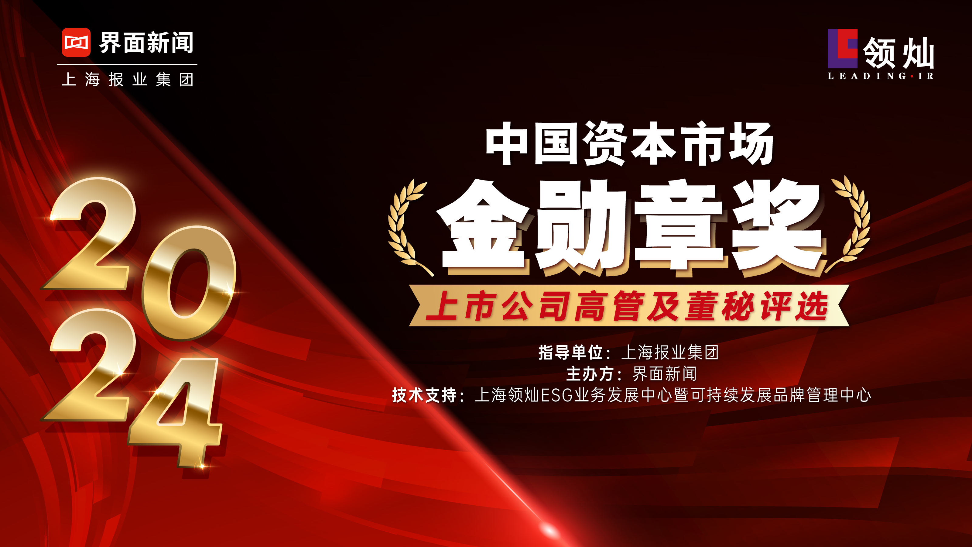 近日,由上海报业集团作为指导单位、界面新闻主办的2024【金勋章奖】评选正式启动。本次评选可涵盖A股、美股以及港股的全行业上市公司中的高管及董秘,通过模型评价、网络投票、专家评审等多个环节全面衡量高管及董秘的综合能力,并依托界面新闻的各类资源,携手业界专家,以确保评选公正性、科学性与权威性。在综合考量领导能力、战略推动、趋势前瞻、完善治理的基础上,表彰高管、董秘等管理层在上市公司各项工作及资本市场发展中所发挥的出色作用。