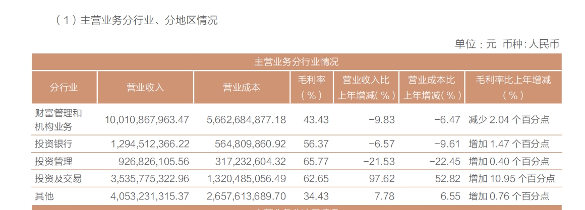 从营收情况来看,招商证券的主要业务中,只有投资及交易同比增长97.62%,其他业务包括财富管理和机构、投资银行以及资管均出现了不同程度的下滑。