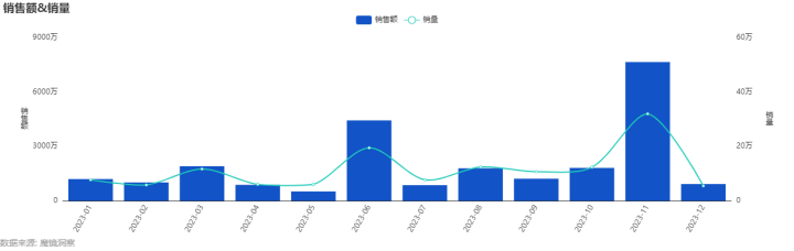 2023年1月-2023年12月主流电商平台沐浴油销售趋势 数据来源:魔镜社交聆听