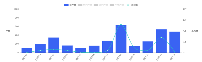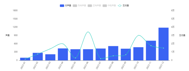 2023年1月-2023年12月主流社交媒体平台沐浴油白茶香的声量&互动量,数据来源:魔镜社交聆听