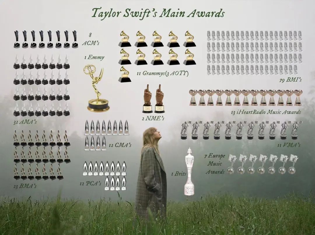 在此之前,泰勒已经拿下了14座格莱美音乐奖,专辑销量可以绕美国一个圈,但是最为惊人的爆发,还是从2023年泰勒公布巡演开始。