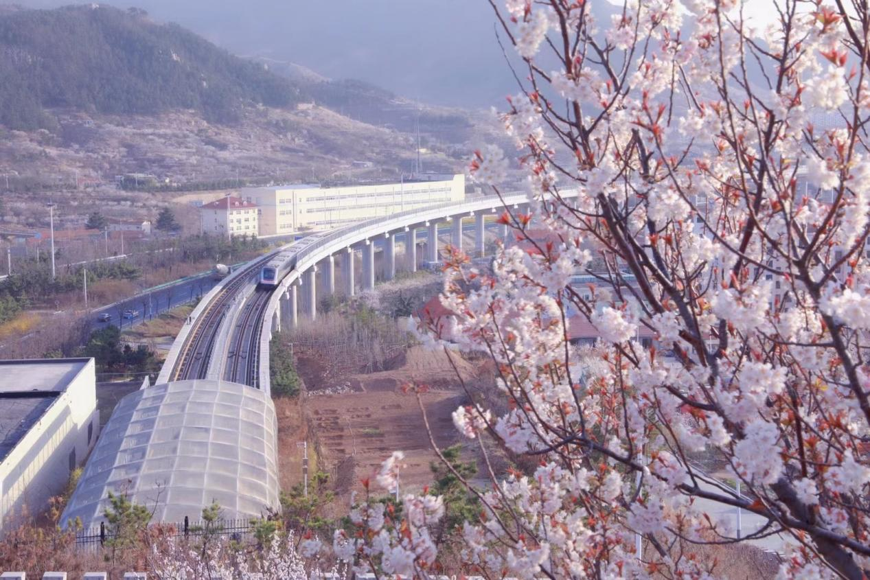 穿山望海的“蓝谷快线”,被誉为“开往春天的地铁”。在春暖赏花季,看崂山区北宅街道南北两侧花开漫山,别有一番韵味。