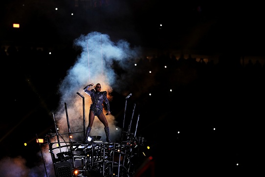 一年一度的NFL超级碗是美国橄榄球(美式足球)赛事,因为赛事开场有美国国歌演唱环节、中场有表演秀环节,加之众多大牌明星参演,而被称为“美国春晚”。