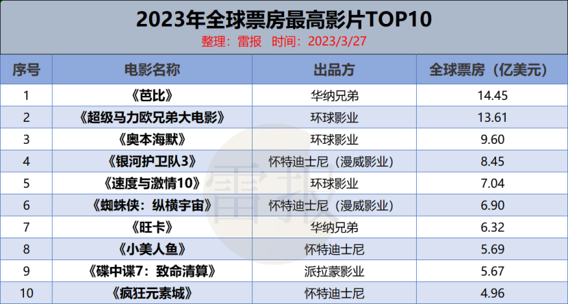 2023年两家均推出了知名IP大电影以及IP续集电影。包括环球影业出品的《超级马力欧兄弟大电影》《速度与激情10》;迪士尼旗下的漫威超英系列《银河护卫队3》《蚁人与黄蜂女:量子狂潮》《蜘蛛侠:纵横宇宙》《夺宝奇兵:命运转盘》《惊奇队长2》等。