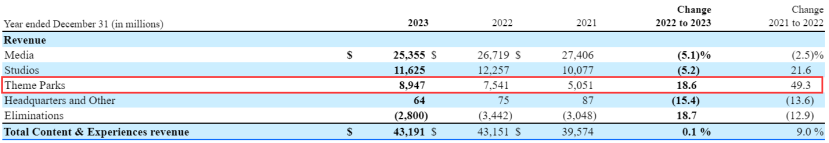 前面提到,迪士尼的主题乐园增长主要体现在国际,环球影城主题乐园也类似,其增长被归于国际主题乐园业务的增长,因为包括北京环球影城在内的国际乐园在去年受到新冠疫情的影响,损失了部分营收。