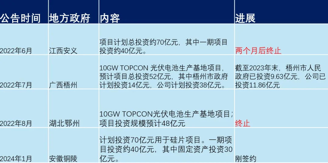 公司在铜陵的5GW N型高效电池片主厂房钢结构完成20%、土建工作完成 35%。 总之,行业不回暖,这两个项目都可以慢慢建,即使建成了也先不着急投产。沐邦高科这样一个审时度势、看菜下饭的合作伙伴,符合一道新能攻城拔寨式的经营风格吗?