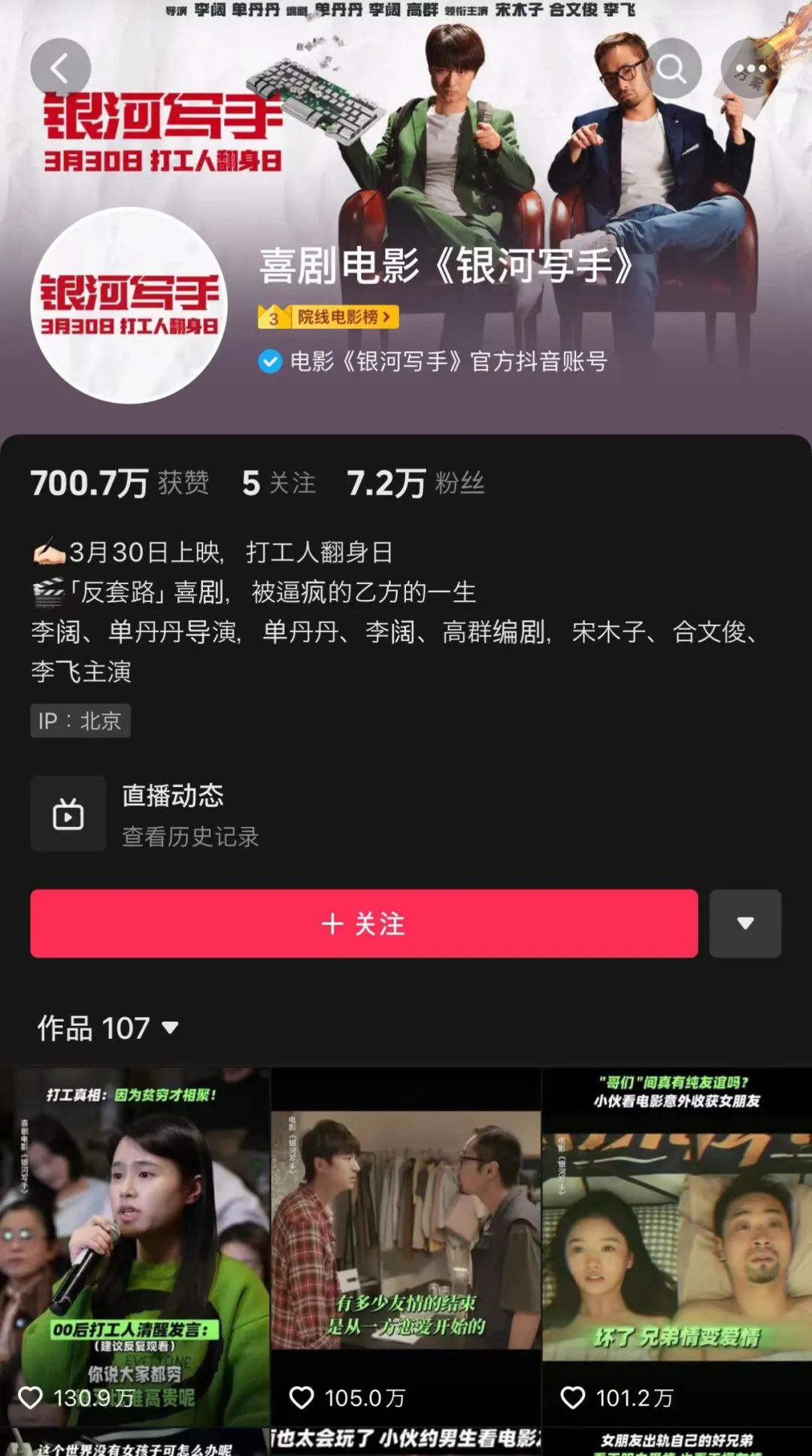 反之,看似商业气质更加浓厚的《银河写手》,却因选题刁钻传播卖点有限失去了破圈的抓手。只能用格格不入的下沉短视频和主创勤劳营业交流去攻略院线市场的普通观众。