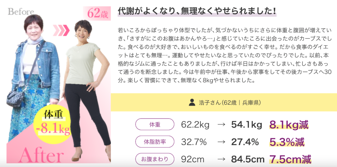 Curves用户的运动健身改变 图源:Curves官网