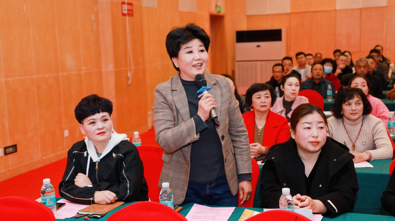 大花朵朵文化传媒创始人大花以《乡村振兴:直播助农的基本逻辑》激情开讲。从普通农民到城市打工一族,再到一名成功的自媒体创业者,大花不仅帮助即墨乡亲带货,还成功培养出多位“新农人”网红。一些学员作为大花的粉丝追随前来听课,并登台讲述心路历程,为学员们打气。