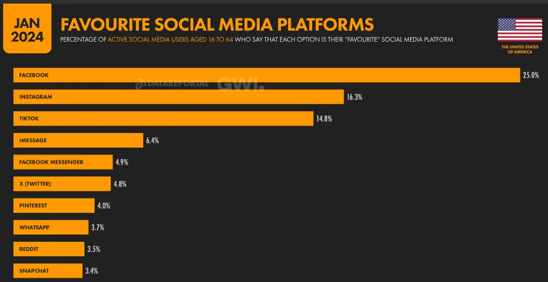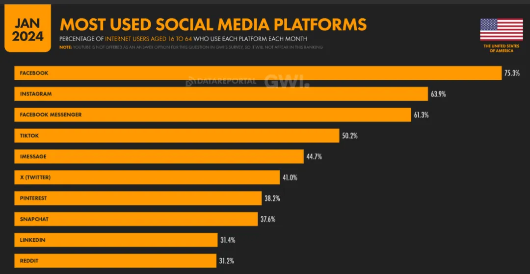 根据全球数字洞察网站Datareportal ,在美国16至64岁的活跃社交媒体用户中,TikTok是第三大最受欢迎的社交媒体平台,以及第四大最常使用的社交媒体平台。