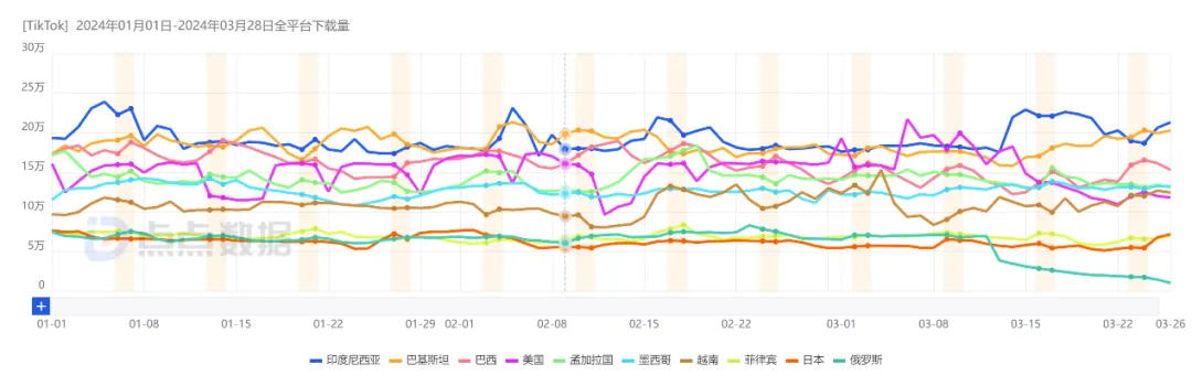 点点数据显示:TikTok在美国内购收入位列第一、下载量位列第四,2024年以来美国地区贡献了TikTok 45.42%的收入、6.59%的下载量。(平台还有广告等其它收入,下图只计内购预估)