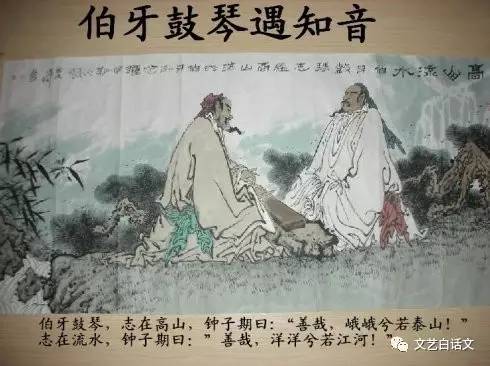 一夜,伯牙乘船游览,面对清风明月,他思绪万千,弹起琴来,琴声悠扬,忽然他感觉到有人在听他的琴声,伯牙见一樵夫站在岸边,即请樵夫上船,伯牙弹起赞美高山的曲调,樵夫道:"雄伟而庄重,好像高耸入云的泰山一样!"当他弹奏表现奔腾澎湃的波涛时,樵夫又说:"宽广浩荡,好像看见滚滚的流水,无边的大海一般!"伯牙激动地说:“您真是我的知音!”这樵夫就是钟子期。后来子期早亡,俞伯牙得知后,在钟子期的坟前弹奏了平生最后一支曲子,然后尽断琴弦,终不复鼓琴。
