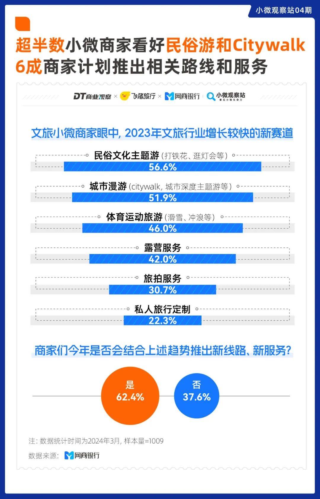 在此背景下,DT商业观察联合网商银行小微观察站与飞猪出品《小微观察站:2024文旅经济小微观察报告》,挖掘文旅小微商家当前面临的新发展机会。
