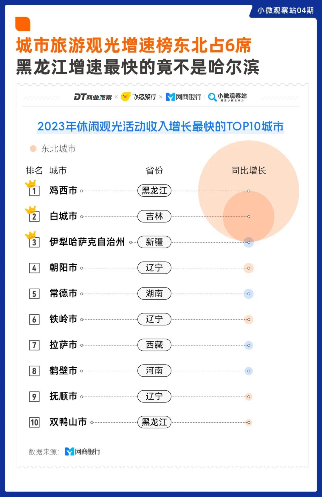 2023年,小微企业休闲观光收入增长最快的TOP10城市中,东北城市占据了六席。