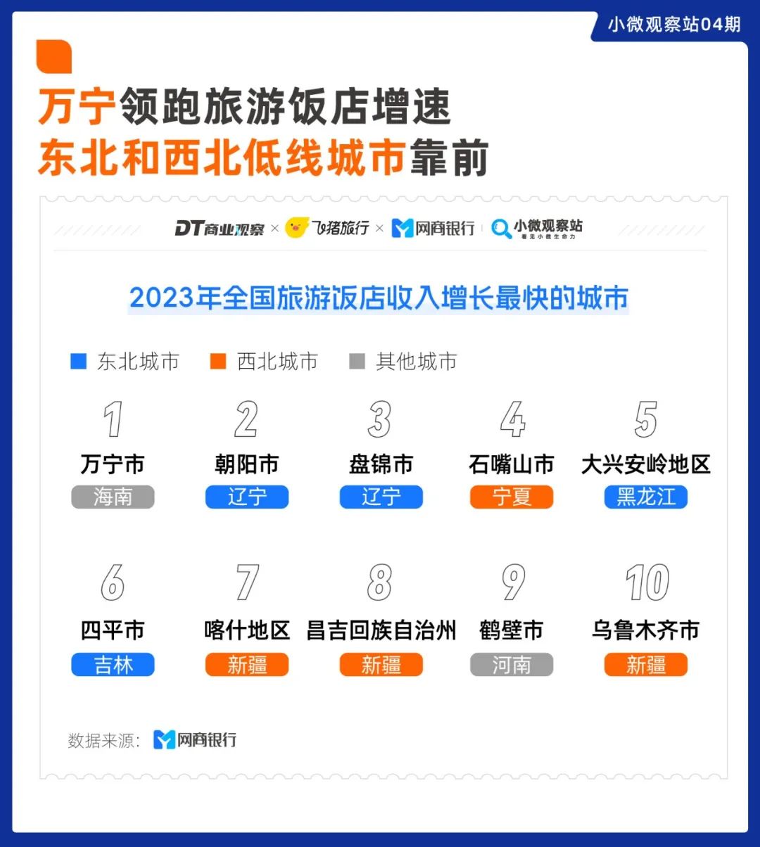 尤其在低线级城市中,酒店住宿像是尚未完全开发的宝藏,展现出巨大潜力。2023年,海南万宁的小微酒店收入同比增长945%,排在全国第一。