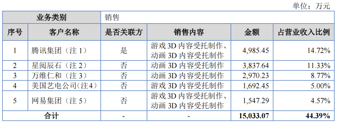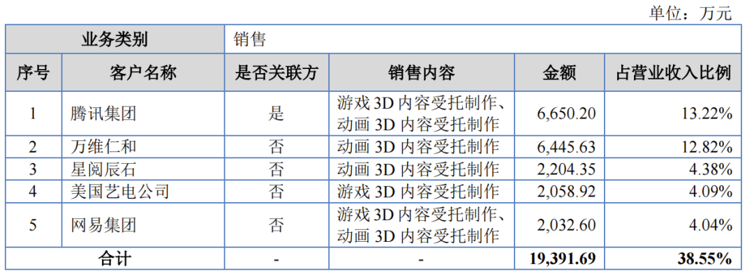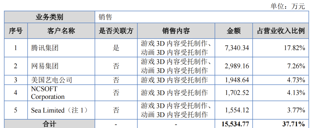 2021年,前三名客户分别是腾讯、网易、美国艺电,金额分别为7340.34万元、2989.16万元,以及1948.64万元。