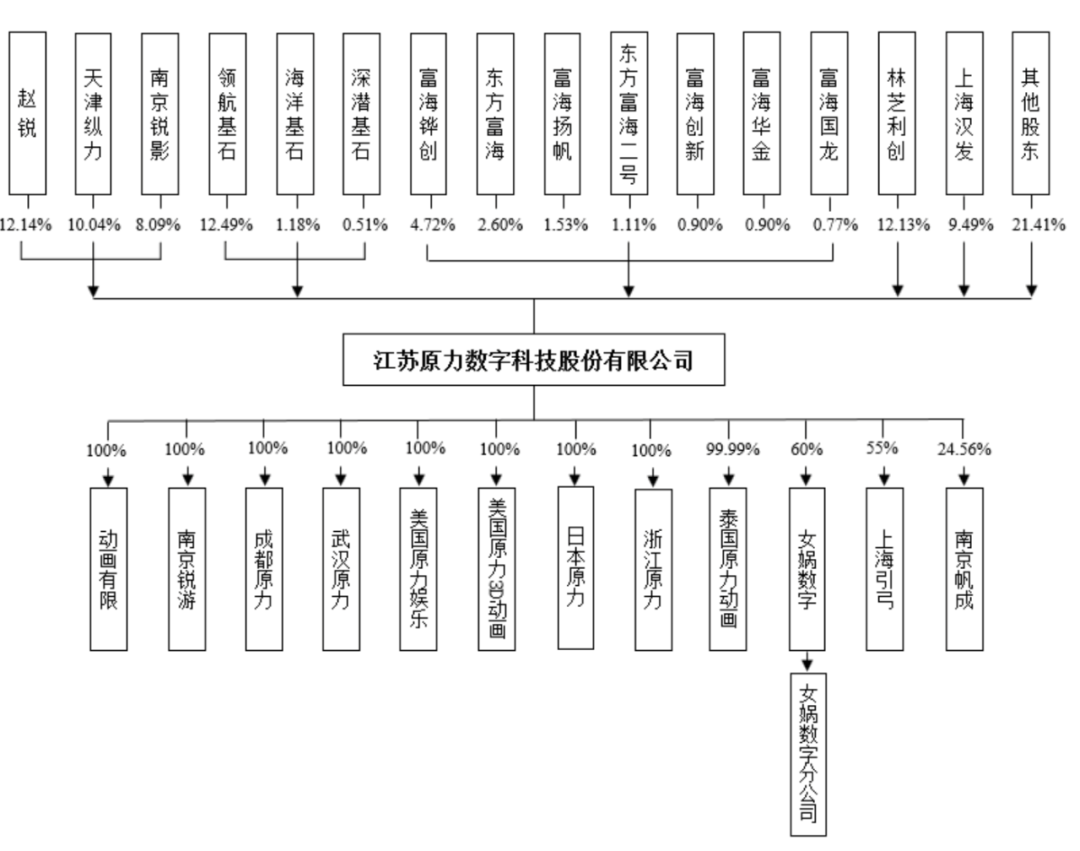 截至该公开转让说明书签署日,江苏原力数字科技股份有限公司的股权结构图如下: