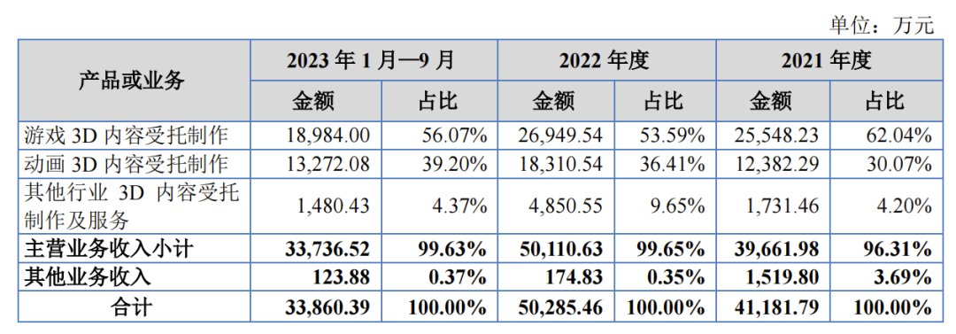 原力动画的主营业务为3D数字内容制作服务业务,涉及“游戏”、“动画”,以及其他行业。