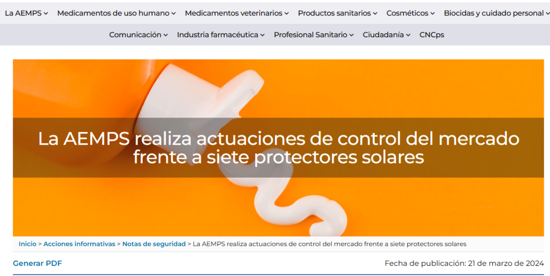 根据AEMPS官网的公告显示,其通过消费者和用户组织(OCU)进行的一项研究发现,有七种防晒霜标签中出现违规行为——防晒值虚标。由于发现违规行为,这些品牌已经被告知采取停售措施。