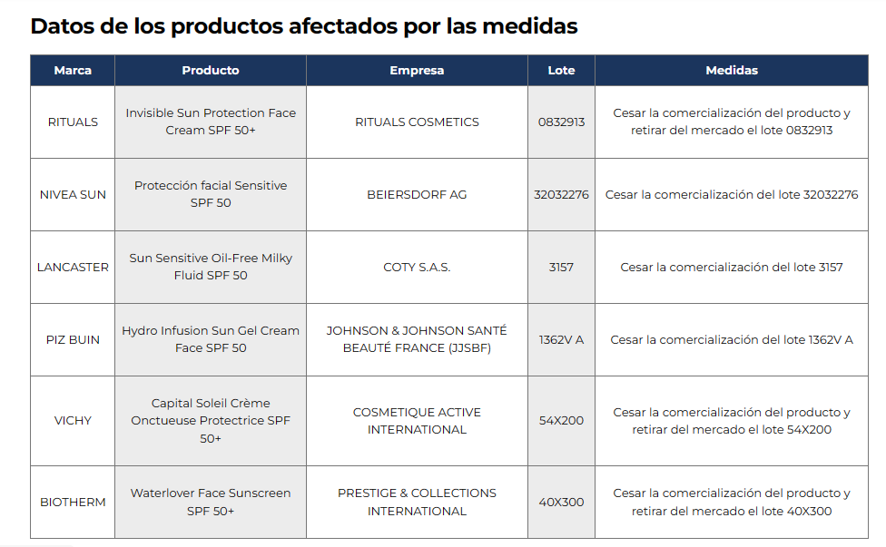 据称,目前没有任何与这些产品有关的晒伤事件报告给西班牙化妆品监测系统。