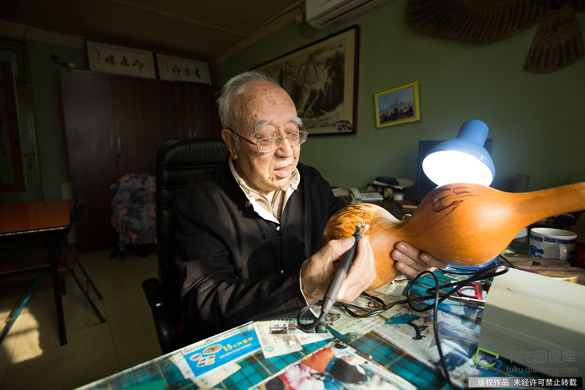 扇面印章书画、卡纸书画、瓷盘画、纸盘画、烙葫芦、刻印纽、象牙果雕刻、薄艺……这些技艺都是梁老师自学成才,而且每一样都进入状态。