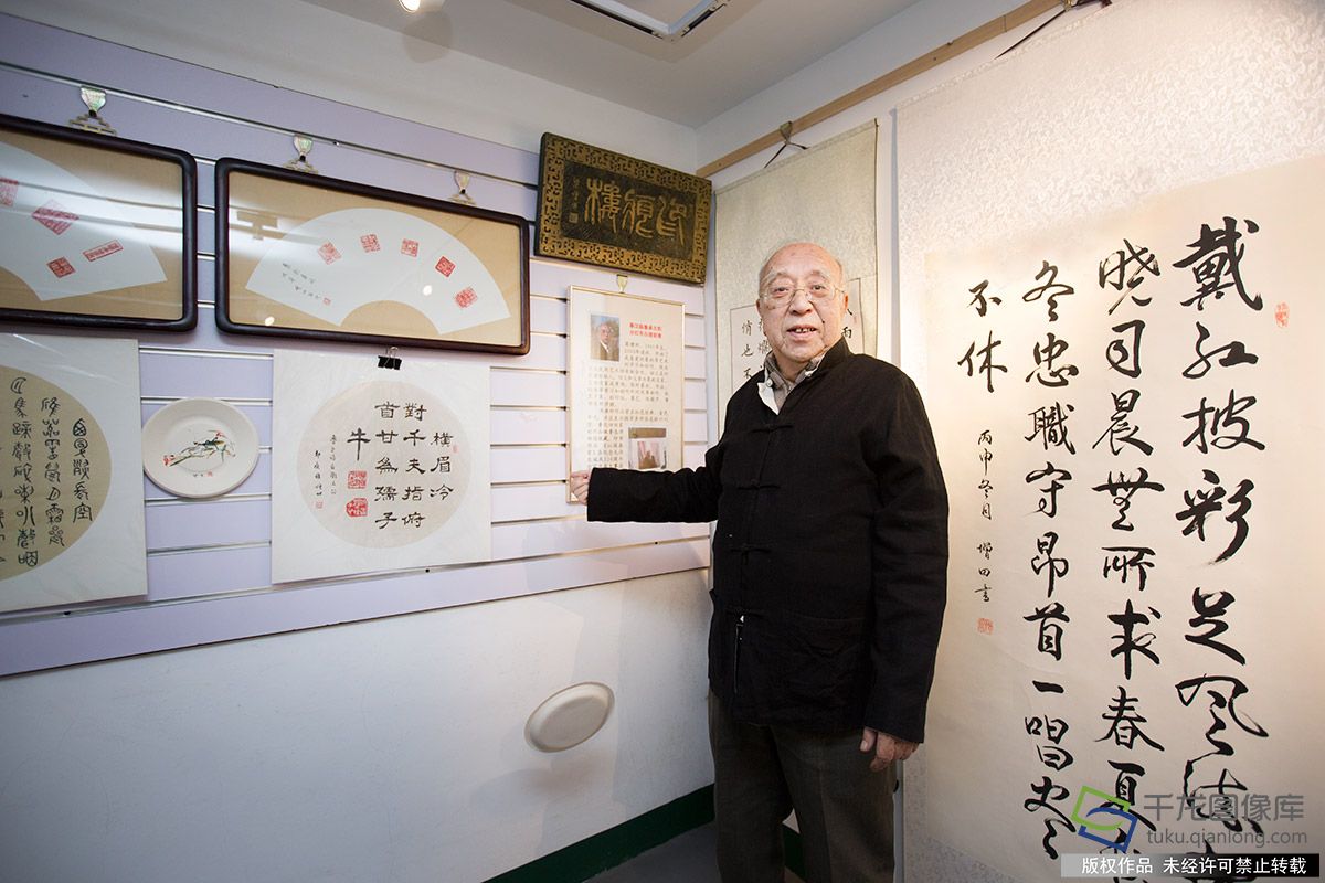 1月3日,梁增田在展示博爱合唱团的照片及荣誉证书。