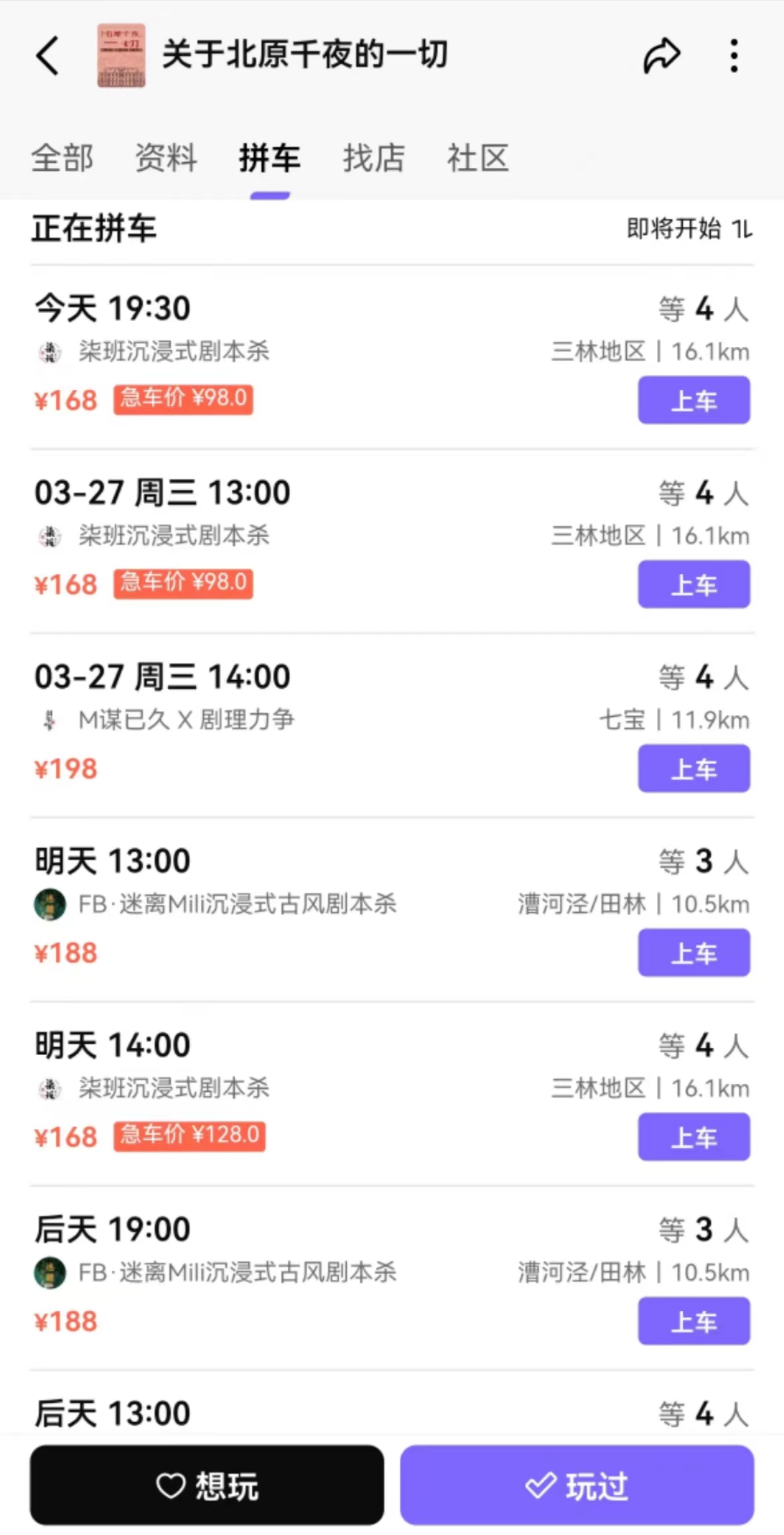当然,墨鱼旅行也有尝试一些较为另类的产品。例如其在上海有一个6人的剧本杀团,本子名为“关于北原秋叶的一切”,售价280元/人。介绍中并没有提到其它服务,只是说可以升级为户外剧本杀,是否额外加钱也没有标注。