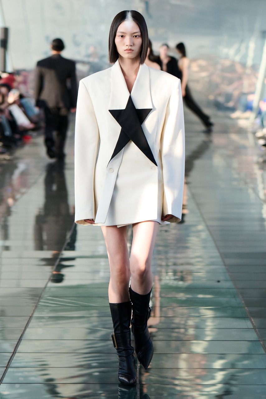 除了服装之外,DION LEE与WOOLMARK、UGG等品牌的合作定制鞋履单品。大秀现场的黑白灰沉稳配色、未来感极强的秀场以及张力十足的设计元素,无不将这种穿透世俗、坚守内在的精神展现得淋漓尽致。