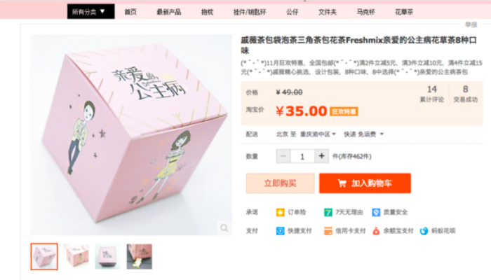 明星效应似乎在茶叶上并不奏效,戚薇的花草茶也遇上了同样的尴尬。进入其网店页面,粉萌的公主风格让人误以为错进饰品店。据说上市的前几个月每月还能卖出几十件, 而如今却已下架。目前唯一仅剩的一款花草茶也门可雀落。