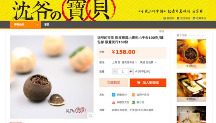 沈宏非的网店,取名为“沈爷的宝贝”,意在分享其心头好。除了让打算减肥节食的人瞬间缴械投降的美食之外,所售卖的茶品也颇有看头。比如,由武夷山非物质文 化遗产大红袍传承人王顺明监制的大红袍、水仙、肉桂等岩茶;被业内称为中国“普洱茶第一人”、“普洱王”的邓时海亲制、督造的福禄圆茶及鸿运茶砖;政和白 茶非遗传承人杨丰所制的牡丹王及杭州“和茶馆”主人庞颖挑选的梅家坞、狮峰龙井等茶品。